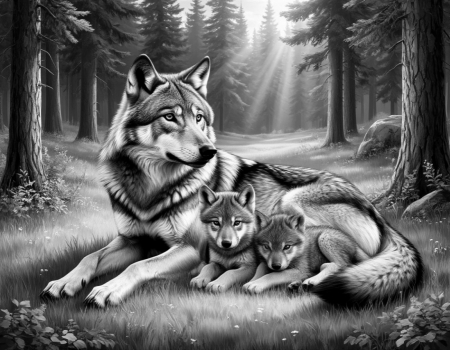 Пазл N 13. Волчица с волчатами