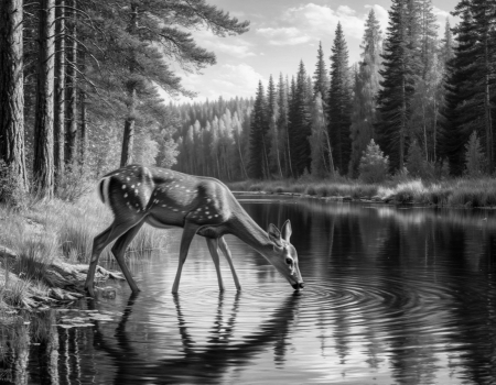 Косуля пришла на водопой к лесной реке.